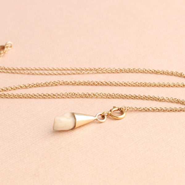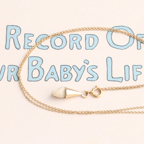 - Materials: 14k gold, your baby's tooth.