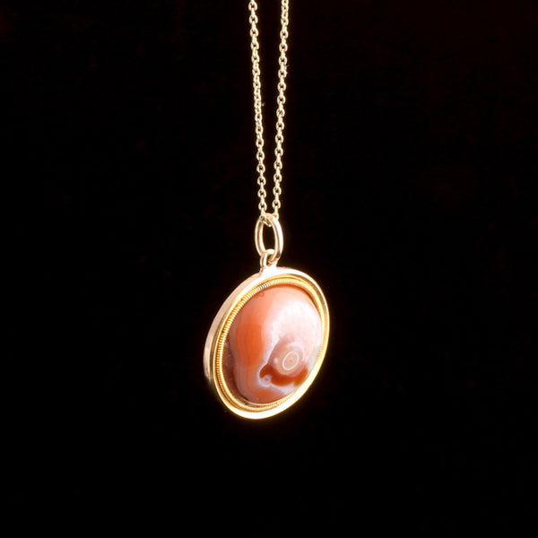 MATERIALS: 10k gold (tests), 1/2" agate cabochon, new 14k gold chain