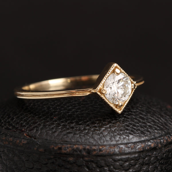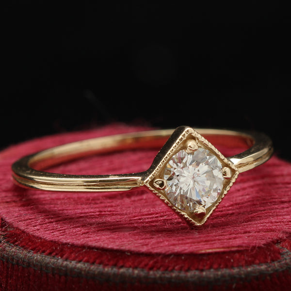 - Materials: .40 carat antique old European cut diamond, 14k gold setting.