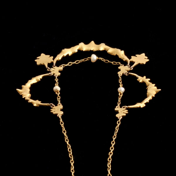Late 19th Century French Ivy Leaves & Bows Festoon Necklace