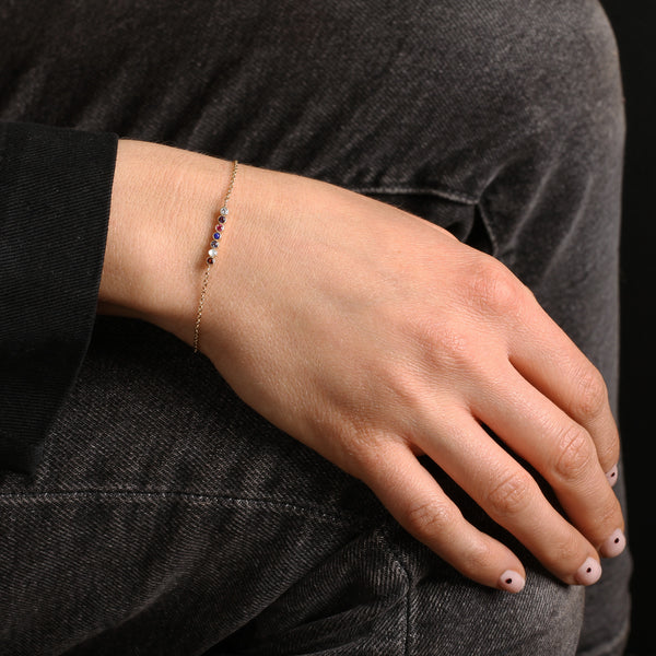 Please allow 3-4 weeks to make and ship your bracelet. Intimate, colorful, and encoded acrostic jewelry first appeared in the early 1800's. Each letter of the alphabet was made to correspond with a different precious gemstone, and the so-called "secret language of gems" was born. For example, a Victorian favorite combo, "DEAREST", would be "spelled" this way: Diamond, Emerald, Amethyst, Ruby, Emerald, Sapphire, Turquoise. Get it? Our acrostic bracelet is a completely personal way to celebrate an important event, express a sentiment, or wear a loved one's name. Customize yours using our interactive stone-picker - we won't tell a soul what it says. We make your bracelet length to order!