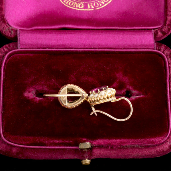 Victorian Garnet & Pearl Heart Cluster Earrings