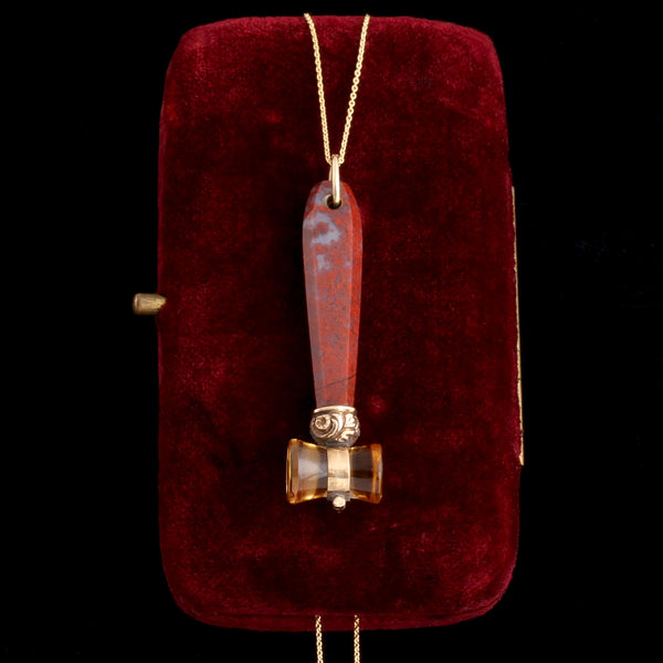 - SIZE: 1 3/4" length including the bale, 3/8" citrine gavel, 1 1/8" jasper handle, 18" chain