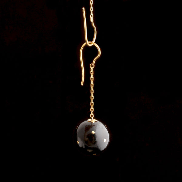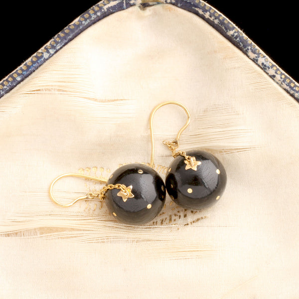 SIZE: 1 3/4" length measured from the top of the ear wire, 1/2" diameter of pique spheres
